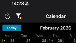 Important: Filters affect only the activity list at the bottom of the screen, not the flight counts shown in the calendar grid at the top. The top calendar always shows the total number of flights per day, while the bottom list shows only the items that match your active filters. This means you may see a “1” on a calendar day but no flights in the list if that flight does not meet the current filter criteria.