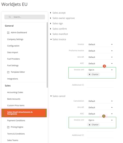 In FL3XX, e-invoicing is delivered as an optional XML attachment sent with the invoice email (alongside the PDF). This supports workflows in which recipients (or the operator’s own accounting inbox) can automatically import invoices into their accounting systems.