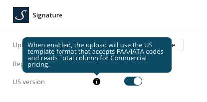 A new US version toggle has been added to the Signature fuel panel.
