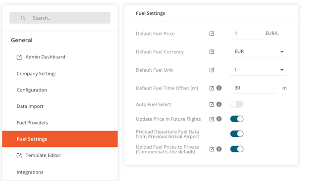 - **Fuel Basis Airport IATA**: This setting is essential for fuel imports when your data file includes multiple price index locations. For example, if your index lists DUS, LPA, and VIE, specify the airport you wish to use for your FL3XX configuration here.