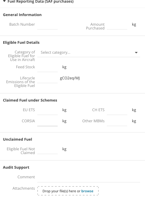 These fields capture SAF purchase and allocation data as required for regulatory reporting.